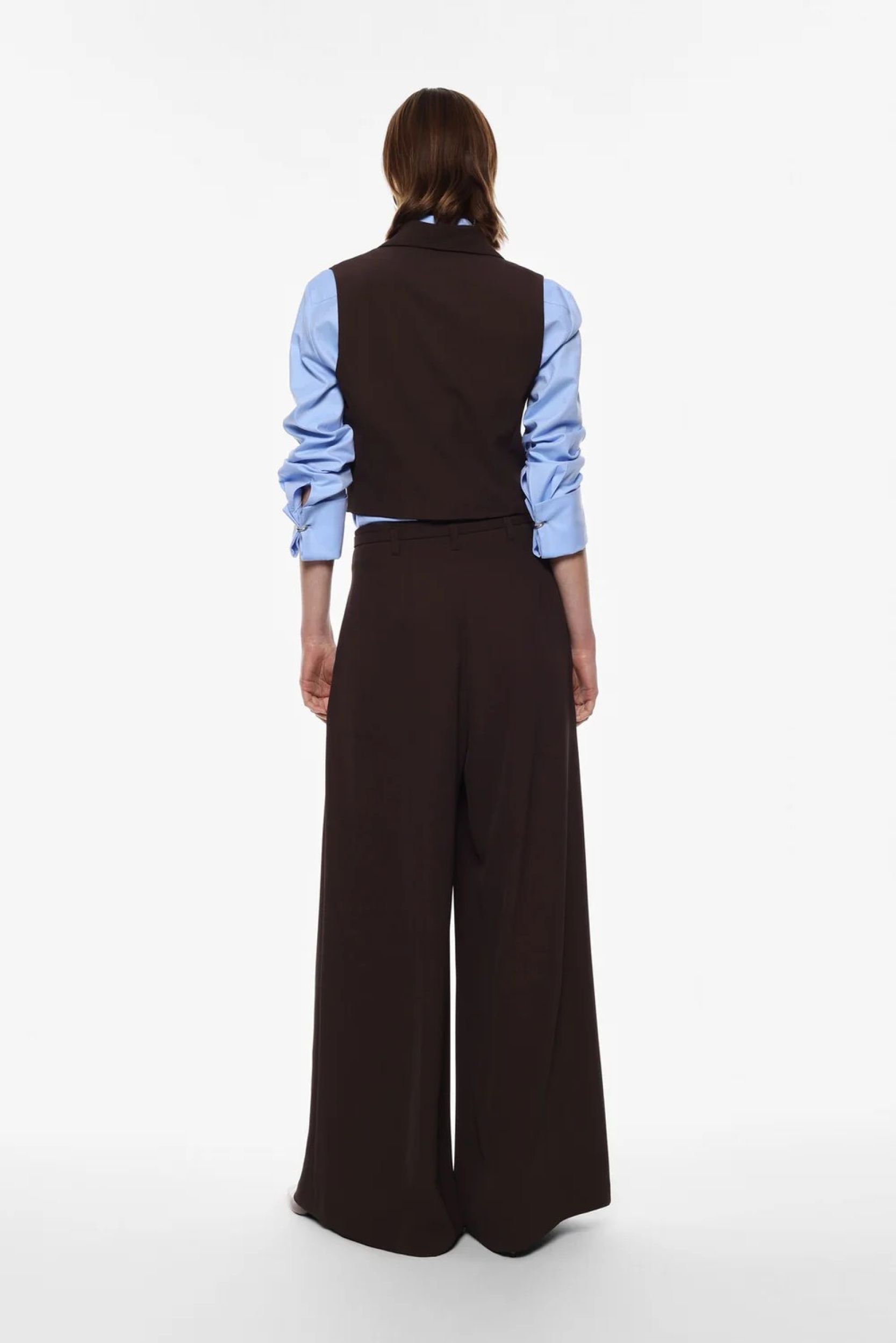 € 105Palazzo Broek met Hoge Taille en Riem. Elegante, soepele palazzo broek, perfect om het silhouet te verlengen en tegelijkertijd absoluut comfort te garanderen. De gestructureerde hoge taille, geaccentueerd door twee gestikte plooien en een ton-sur-ton riem, verfijnt het silhouet en benadrukt de taille. De pijpen zijn wijd en uitlopend, gemaakt van kreukvrij stretchcrêpe met een onberispelijke drapering. Twee Italiaanse zakken maken de look compleet voor een moderne, op maat gemaakte look. Draag de broek los voor een soepele look of als een compleet pak met het JBF1 jasje of het JT86 blazer. Kenmerken: • Palazzo-broek • Hoge taille, verborgen ritssluiting • Twee taillenaden • Bijpassende riem inbegrepen • Wijde, uitlopende pijpen • Twee Italiaanse zakken • Materiaal: zeer soepele en kreukvrije stretchcrêpe • Kleuren: verkrijgbaar online en in de winkel • Afmetingen voor maat XS: binnenbeenlengte 34 cm, beenwijdte 46 cm