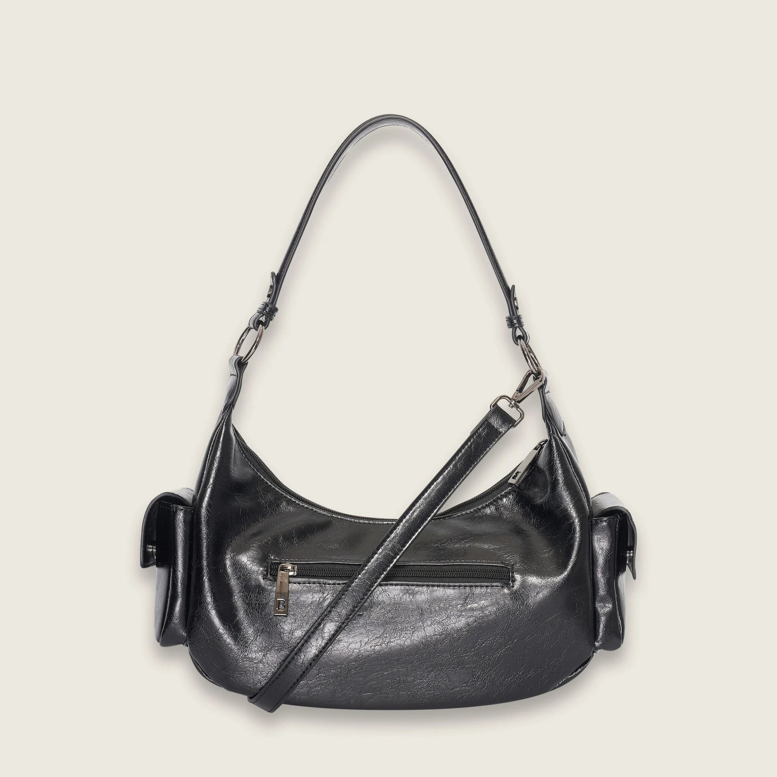 € 69,95Deze stijlvolle zwarte Crinkle hobo , is een super modern tasje waarmee je dit seizoen helemaal on-trend bent. Deze hobo schoudertas heeft dubbele schouderbanden die je zeer prettig op de schouder draagt. Door de bijgeleverde schouderband is deze tas gemakkelijk op diverse manieren te dragen. Aan de binnenkant heeft deze tas een hoofdcompartiment met twee binnenvakjes, waarvan één met rits. De tas kan worden afgesloten middels een rits. De metaalkleur is een donkere, antraciete kleur. De afmetingen (breedte / hoogte / diepte) van deze tas zijn 35x20,5x10