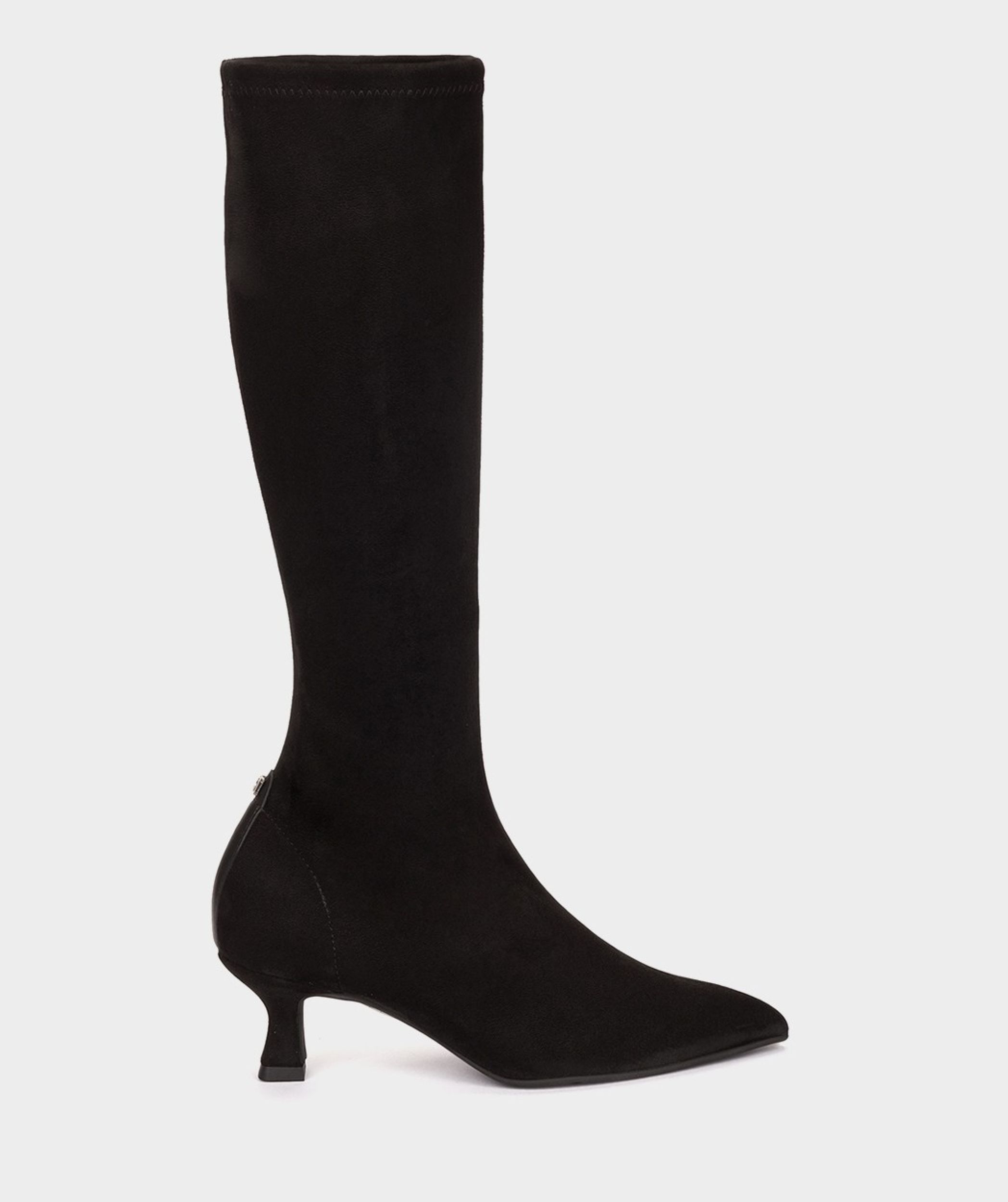 € 149Heeled boots in stretch fabric with black suede effect. These boots are a basic, their elastic material is ideal for daily use as well as for any event. Heel height: 6 cm. Shaft height: 37 cm. Shaft width: 34 cm.